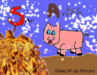 Un día de San Antón por la mañana todos estábamos muy tristes porque iban a matar al pobre cerdito, entonces cuando se hizo de noche encendieron la hoguera de San Antón y ella sacaba fuego y  fuego durante 30 minutos, tiraban  petardos, al final nos fuimos al pabellón, donde cogían el tocino y el que lo cogía se lo llevaba. Si quería  lo mataban, además ¡toda la gente los mata!